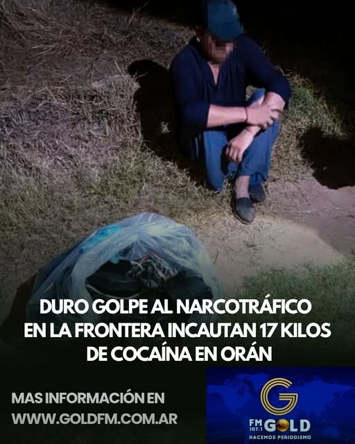 Efectivos del Escuadrón 20 “Orán” de Gendarmería Nacional, en el marco del Plan Güemes, lograron secuestrar más de 17 kilos de cocaína y detener a un ciudadano de nacionalidad boliviana en una zona rural de la ciudad.