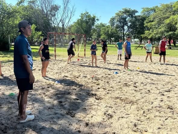 Darío Segretín, desde la Coordinación de Deportes, acompañó a Christian Artigas, representante de la Asociación Salteña de Beach Handball, en su visita a la ciudad para supervisar pruebas destinadas a jóvenes talentos de la disciplina.