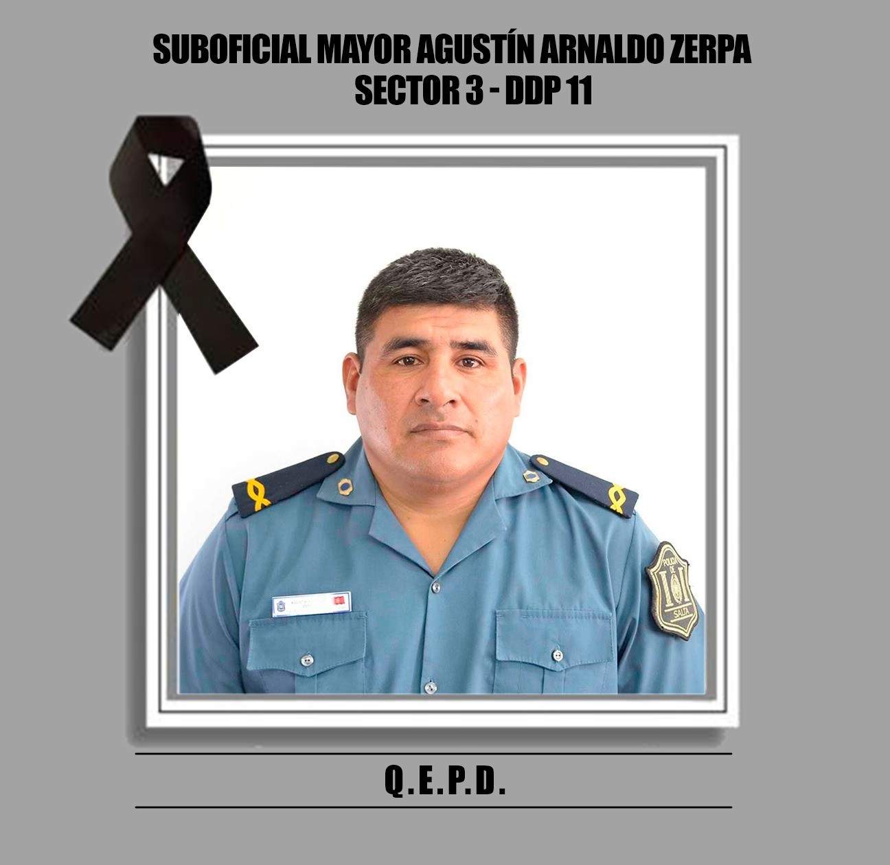 Con profundo pesar la Jefatura de Policía informa el deceso del Suboficial Mayor Agustín Arnaldo Zerpa quien prestaba servicio en el Sector 3 del Distrito de Prevención 11.