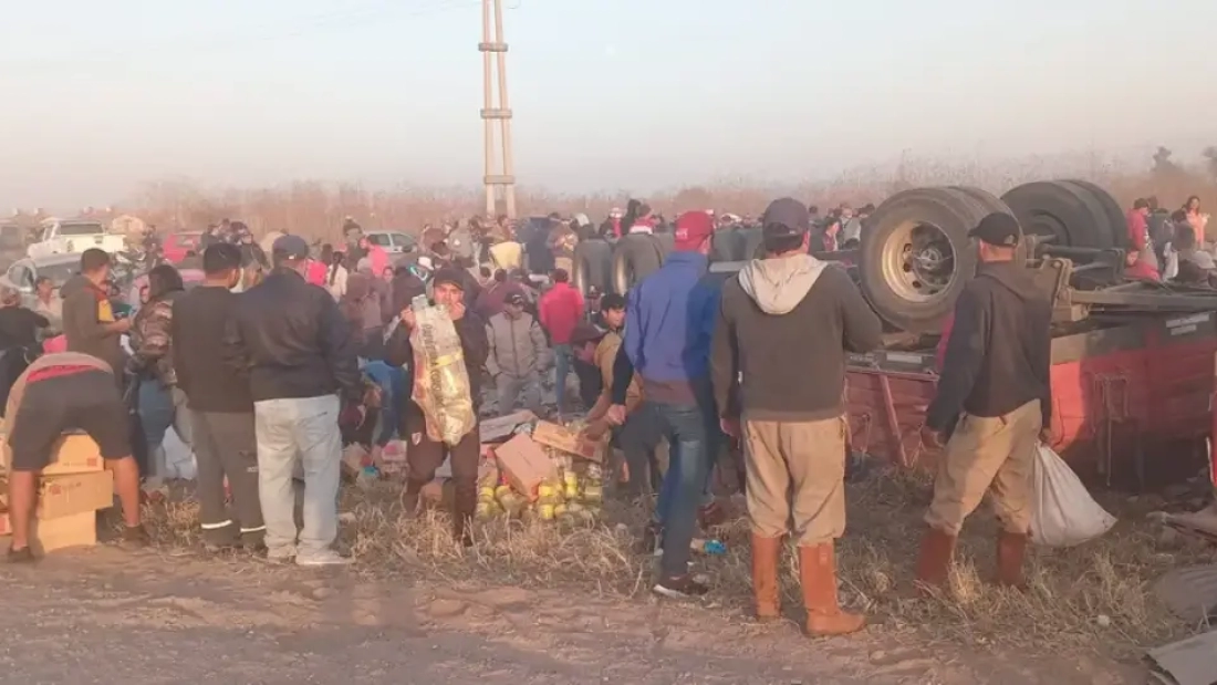 Al grupo de ocasiones conductores que se encontraban en el lugar, se sumó rápidamente decenas de personas que en cuestión de minutos se llevaron la mercadería que estaba destinada a supermercados.